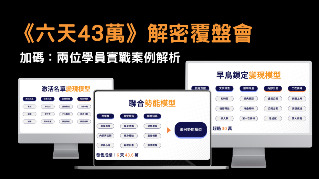 此模型非常萬用,不論是發售初學者,還是老手都可以善加利用,因為這套方法,可以輕鬆銜接之後的各種發售,第一次使用此方法就讓我在兩個小時內賣出價值 9 萬的折價券。